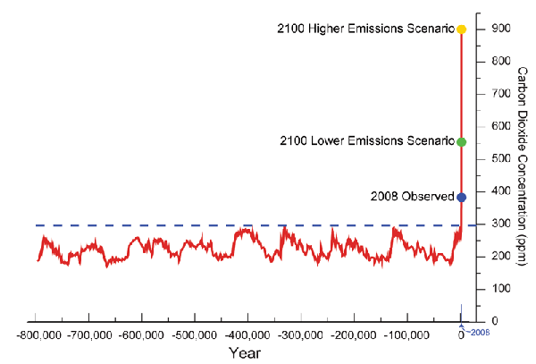Les concentrations de dioxyde de carbone ont encore augmenté en 2022. Les mesures effectuées par l’observatoire atmosphérique de la NOAA sur le Mauna Loa à Hawaii ont culminé pour 2022 à 420,99 parties par million (ppm) en mai, soit une augmentation de 1,8 ppm par rapport à 2021. C’est une concentration qui n’a pas été observée depuis des millions d’années. . Les scientifiques de la Scripps Institution of Oceanography, qui effectue des mesures indépendantes, arrivent à une moyenne mensuelle similaire avec 420,78 ppm.