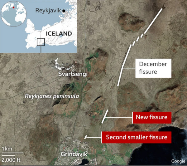 Quatre jours plus tard, le 14 janvier, une nouvelle éruption commençait, près de Grindavik.