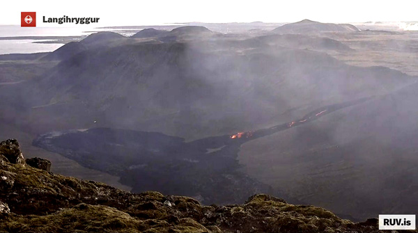 7 heures : Comme je l’écrivais dans ma dernière note consacrée à l’éruption islandaise, l’information selon laquelle la route côtière aurait été coupée par la lave demandait confirmation. Pour le moment, il n’en est rien, comme on pouvait le voir hier soir les images de la webcam braquée vers la Meradalir.