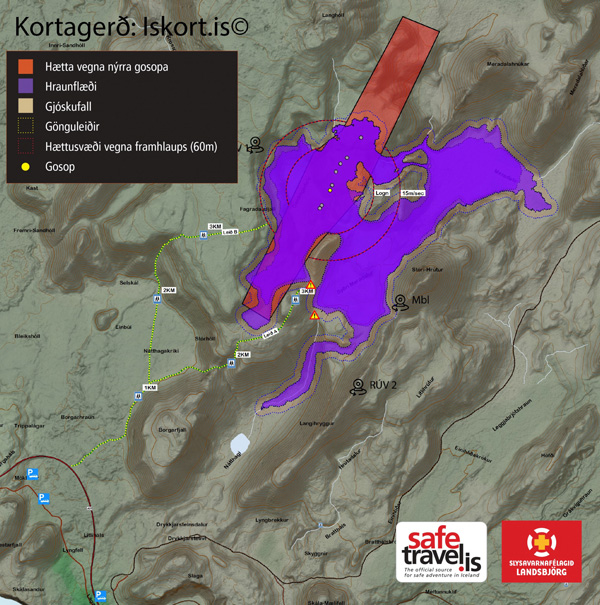 To sum it up, the website SafeTravel.is explains that for the time being, Trail A is closed. Trail B is open but it is longer and more difficult to walk than Trail A. Good shoes and hiking poles are essential. Most people need 3-4 hours to walk the trail (return trip) from the starting point by the road.