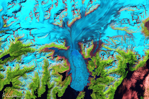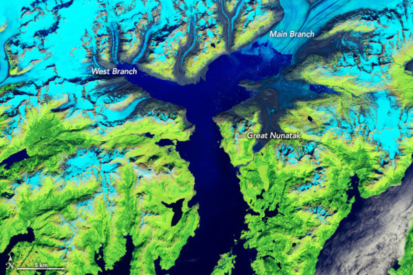 In the end, this means that, as our planet warms, Arctic regions are transforming from planetary refrigerators to radiators. This is causing Alaska’s snowpack, the snow that accumulates in winter and melts in spring, to shrink. Climate models predict that by the middle of this century, a dramatic reduction in snow pack will threaten the region’s glaciers and bring stronger storms and more rainfall. Satellite images from NASA have shown how fast the Columbia Glacier has been melting in the last decades.