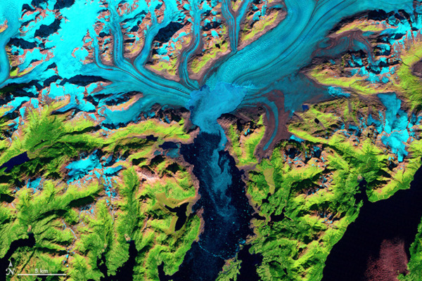 Image satellite montrant la fonte dans le sud de l’Alaska (Source : NASA)