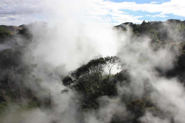Végétation en milieu volcanique en Nouvelle Zélande (Photo : C. Grandpey)