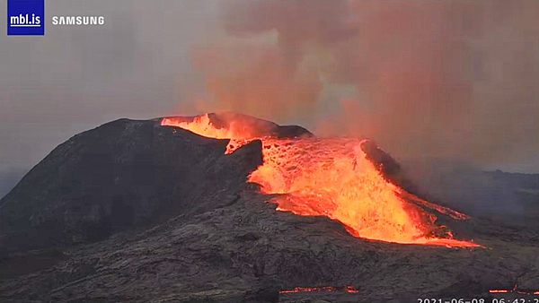L’éruption se poursuit tranquillement sur la péninsule de Reykjanes (Islande). Au cours des derniers jours, le cratère actif se contentait de dégazer et la lave ne s’agitait plus à l’intérieur de la bouche, mais elle bouillonnait à nouveau le 28 juillet dans l’après-midi. Les géologues islandais pensent que la lave s’évacue dans la vallée de Meradalir à l’est, mais principalement en tunnels de sorte que l’activité de surface est rarement visible, semble-t-il. Le tremor éruptif reste très irrégulier. Comme je l’ai écrit précédemment, les scientifiques locaux pensent que l’éruption touche peut-être à sa fin.