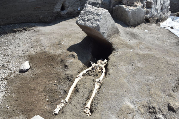 Les fouilles qui viennent d’être entreprises à Herculanum portent déjà leurs fruits. Un nouveau squelette a été découvert et il pourrait fournir de nouvelles informations sur la catastrophe. Ce sont les restes d’un homme probablement âgé de 40 à 45 ans. Ils se trouvaient sous plusieurs mètres de roche volcanique, là où se trouvait le littoral d’Herculanum avant qu’il soit repoussé de quelque 500 mètres vers le large par l’éruption du Vésuve en 79 après JC.