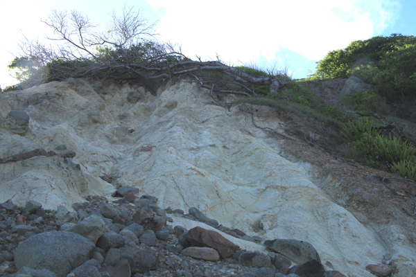 A la Martinique, où je me trouvais il y a quelques semaines, les manifestations hydrothermales ne sont pas très nombreuses. Selon les documents que j’ai pu consulter, les sources thermales de la Montagne Pelée sont localisées sur son flanc ouest, autrement dit le versant caraïbe. Les principales sont celles des Rivière Chaude, Mitan et Picodo, et du bord de mer à proximité de la carrière de Fond Canonville. Le sentier qui conduit aux sources thermales à l’amont de la Rivière Chaude est un véritable parcours du combattant au sein d’une végétation exubérante et difficilement franchissable. Personnellement, je n’ai jamais osé entreprendre une telle expédition! J’ai lu que le chemin repose sur les dépôts des nuées ardentes historiques de la vallée de la Rivière Blanche. Ces formations comblent une dépression probablement formée par un effondrement d’un flanc de la Montagne Pelée, il y a 9 000 ans.