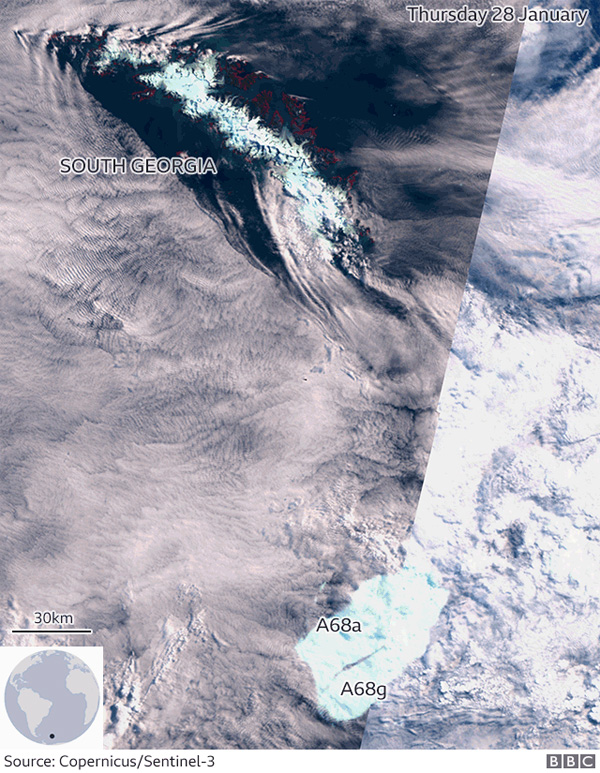 L’A68 à proximité de la Géorgie du Sud (Source: Copernicus)