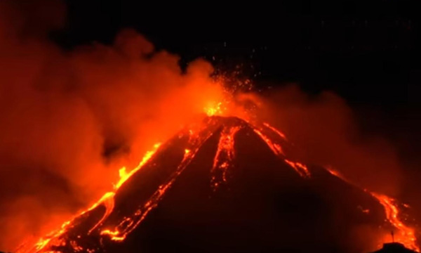While lava was flowing from the lowermost vents, outside the northern rim of Valle del Bove, the birth of the SE Crater began in mid-May 1971 as a degassing pit that appeared on the southeastern base of the main summit cone, erupting steam and ash. According to Boris Behncke, this pit served as a « pressure valve » for the extensive fissure system that propagated from here to the northeast across Valle del Bove, with degassed lava issuing from the lowermost vents. This pit remained inactive for seven years after the end of the 1971 eruption, but in 1978 it reawakened and became known as the Southeast Crater, site of most of Etna’s summit activity since then.