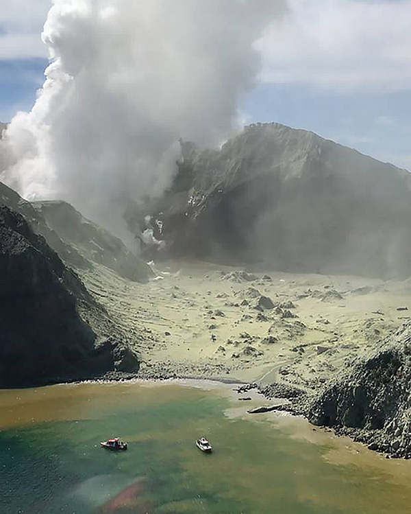 Cette photo diffusée par le Helicopter Rescue Trust montre la violence de l’explosion qui a balayé le cratère de White Island