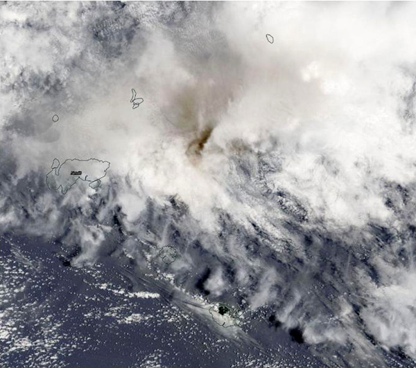 L’éruption du 21 octobre vue depuis l’espace (Source: NASA)