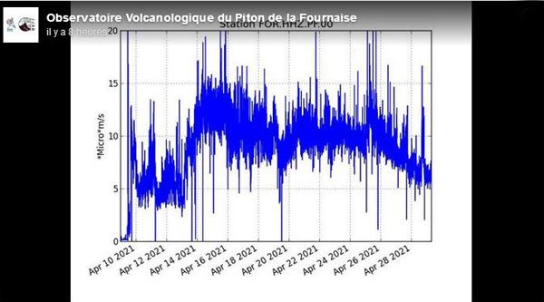Selon les dernières informations fournies par l’OVPF, l’amplitude du trémor éruptif est stable et se situe à environ 20% de son niveau initial. Les fontaines ont disparu et l’écoulement de la lave se fait principalement en tunnel, avec deux axes d’écoulement. Le front de lave actif se situe dans le secteur du cratère Château-Fort, vers 2 000 m d’altitude. On estime que depuis le début de l’éruption, le 19 septembre, le volume de lave émis est de l’ordre de 1,2 à 2,6 millions de mètres cubes. Le débit actuel est assez faible, entre 1 et 3 mètres cubes par seconde.