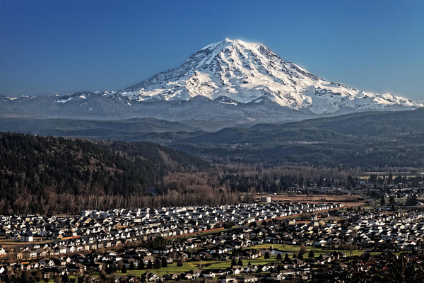Vue de la ville d’Orting qui serait directement menacée par des lahars en cas d’éruption du Mont Rainier (Crédit photo: USGS)