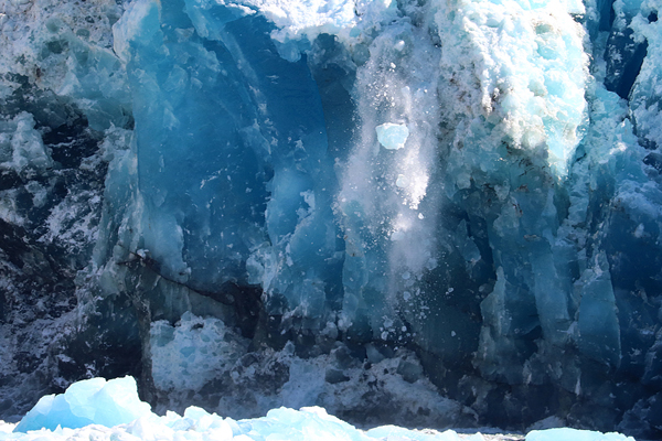 Lorsque les glaciers vêlent dans un lagon ou dans la mer, de gros blocs de glace se détachent de leurs fronts et s’effondrent en soulevant des masses d’eau ; cela donne naissance à un spectacle impressionnant et bruyant. Une distance de sécurité doit être respectée car les vagues générées par les effondrements peuvent être puissantes et sont capables de retourner des embarcations.