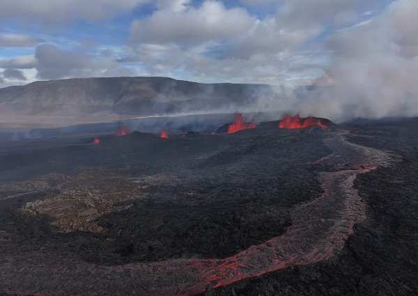 Les dernières observations révèlent qu’une mare de lave s’est formée autour de la fissure éruptive à Sundhnúksgíga. La principale coulée de lave se trouve au nord-ouest, mais elle ne progresse plus, de sorte qu’il est peu probable qu’elle atteigne la Grindavíkurvegur. Tout se passe au nord du Mt Stóra Skógfell.