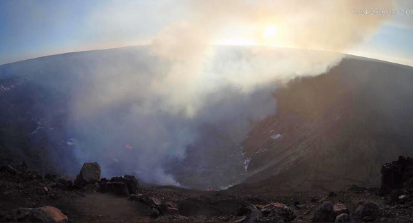 The latest webcam images and a helicopter overflight show that the lava lake is well fed and its level constantly rising.